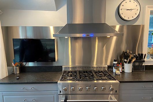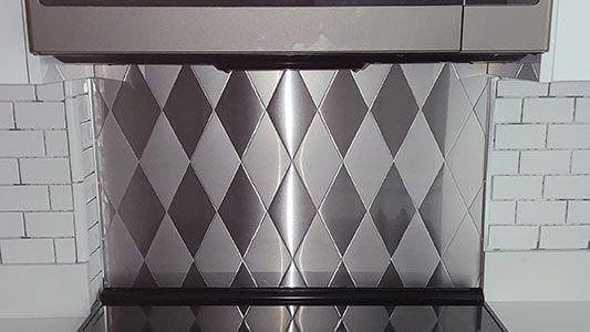 We've had our stainless steel backsplash from JTC Metals now for almost 3 years. If you hate grout like I do, this is the backsplash for you. Easy to clean with Magic SS cleaner and polish. Just remember when you're cleaning to follow the grain. I cook everyday, and this is a great solution for an easy clean up kitchen. I just ordered my second one for our new house. 5 stars Marian. Bellingham WA.